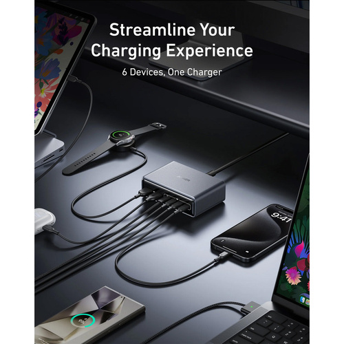 - پورتهای متنوع: وجود 6 پورت USB-C به شما این امکان را میدهد تا تمامی دستگاههای خود را به طور همزمان شارژ کنید. این ویژگی به ویژه در محیطهای کاری و خانگی که چندین دستگاه در حال استفاده هستند، بسیار کاربردی است.