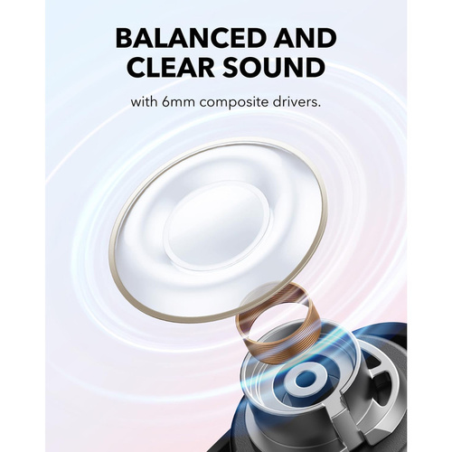 • فناوری ANC پیشرفته: با کاهش نویز محیطی تا 46 دسی‌بل، Soundcore A30i به شما امکان می‌دهد تا از موسیقی، پادکست یا کتاب‌های صوتی خود بدون هیچ‌گونه مزاحمتی لذت ببرید.