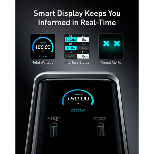 یکی از نقاط قوت این محصول، توان خروجی 160 وات آن است. این میزان توان به کاربران اجازه می‌دهد لپ‌تاپ‌های پرمصرف مانند مک‌بوک پرو 16 اینچی، سرفیس بوک یا حتی برخی لپ‌تاپ‌های گیمینگ را با سرعت بالا شارژ کنند. حتی در حالتی که چندین دستگاه به‌طور همزمان متصل باشند، سیستم مدیریت هوشمند توان انکر تضمین می‌کند که شارژ بهینه به هر دستگاه اختصاص یابد.