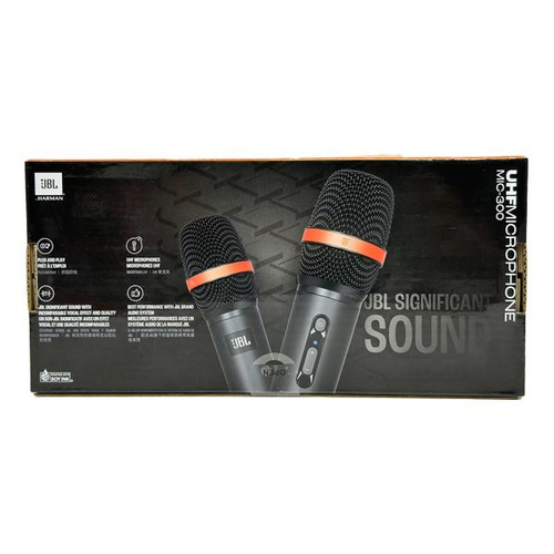 میکروفون بیسیم جی بی ال JBL Wireless Microphone Set به همراه گیرنده ساخت JBL مناسب برای اسپیکر های وایرلس سری پارتی باکس است. این کیت که شامل دو عدد میکروفون بی سیم و یک عدد گیرنده میباشد ساخت کمپانی JBL است و مخصوص به اسپیکر جی بی ال سری پارتی باکس طراحی و تولید شده است . شارژدهی بالا , پایدارای ارتباط فرستنده و گیرنده و انتقال صدا با کیفیت صدای حرفه ایی از جمله محاسن این میکروفون های وایرلس است . اگر جز کاربرانی هستید که به کارائوکه علاقه دارید، این میکروفون میتواند در جاده و هنگام ماشینسواری، ابزاری سرگرمکننده برای شما باشد. از دیگر قابلیتهای خوب این میکروفون میتوان به باند فرکانس UHF و فرکانس فوقالعاده بالای آن اشاره کرد. میکروفونهای JBL Wireless UHF Microphone 300، صدای واقعی Orginal JBL Pro Sound ارائه میدهند که کیفیتی باورنکردنی دارند. در این محصول، نسبت سیگنال به نویز برابر با 90 دسیبل است که کیفیت صدای بالا و صدایی واضح و شفاف را تضمین میکند. وضوح و کیفیت صدا در این میکروفون عالی بوده و همچنین تأخیر آن نیز بسیار کم است. همچنین نویزی در صدا وجود نداشته و صدا با نهایت کیفیت و وضوح پخش میشود. در کل کیفیت صدای این محصول میتواند رضایت هر کاربری را به خود جلب کند. اجرای انفرادی خود را با تبدیل به پخش 2 نفره ، به یک نمایش واقعی صحنه افزایش دهید. دو میکروفون بی سیم را به طور همزمان وصل کنید و هر دو صدا به طور کامل از اسپیکر با زمان پخش حداکثر 6 ساعت مداوم به صدا در می آیند. میکروفون ها با باتری قابل تعویض AA عرضه می شوند. میکروفونهای بیسیم jbl دارای باتریهای AA هستند که به سادی قابل تعویض هستند، بنابراین نمایش میتواند در تمام شبانه روز به صورت پیوسته ادامه داشته باشد.