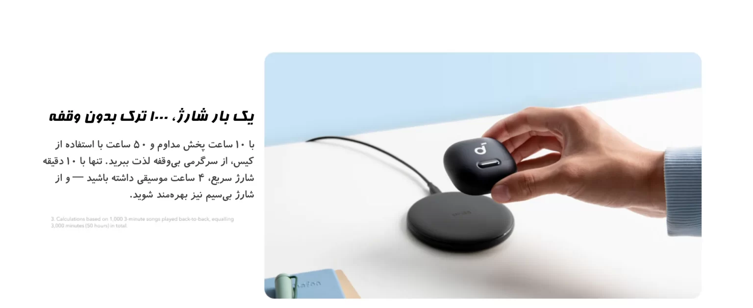با هر بار شارژ، ایربادزها تا 10 ساعت پخش موسیقی و همراه با کیس شارژ تا 50 ساعت شارژدهی دارند. همچنین Liberty 4 NC از شارژ سریع پشتیبانی میکند؛ تنها با 10 دقیقه شارژ، تا 4 ساعت استفاده خواهید داشت.