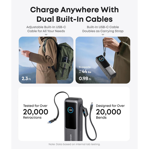 پاوربانک 100 وات انکر مدل A1695 ظرفیت 25000 میلی آمپر ساعت به همراه دو کابل USB-C