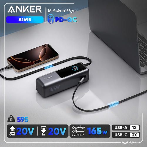 اگر به دنبال پاور بانکی قدرتمند و قابل اعتماد برای شارژ لپتاپ، گوشی موبایل، تبلت یا گجتهای دیگر خود هستید، پاور بانک انکر 25000 میلی آمپر 165 وات مدل A1695 یکی از بهترین گزینهها در بازار است. این محصول با ظرفیت فوقالعاده بالا و توان خروجی چشمگیر، پاسخگوی نیاز کاربران حرفهای و مسافران خواهد بود.