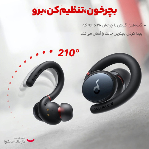 Anker Soundcore Sport X10 دارای نگهدارنده‌های ایرباد اختصاصی و منحصر به فرد است که تا 210 درجه قابلیت چرخش به شما ارائه می‌کند. این ویژگی به شما کمک می‌کند تا راحت‌ترین و امن‌ترین حالت قرارگیری ایربادها بر روی گوش خود را بیابید تا زمان استفاده نگرانی از بابت افتادن آن نداشته باشید.
