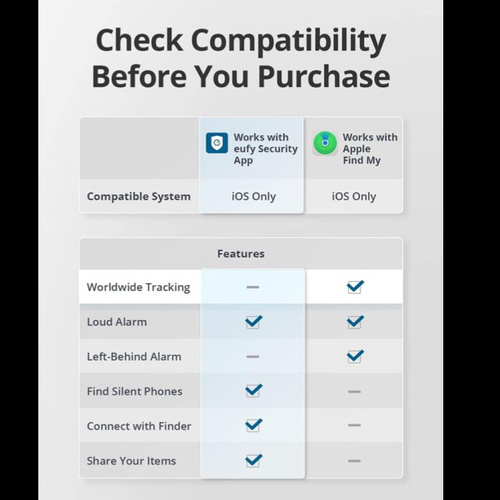 سازگاریبا اپلیکیشن eufy Security و همچنین برای کاربران iOS، با اپ «Find My» اپل